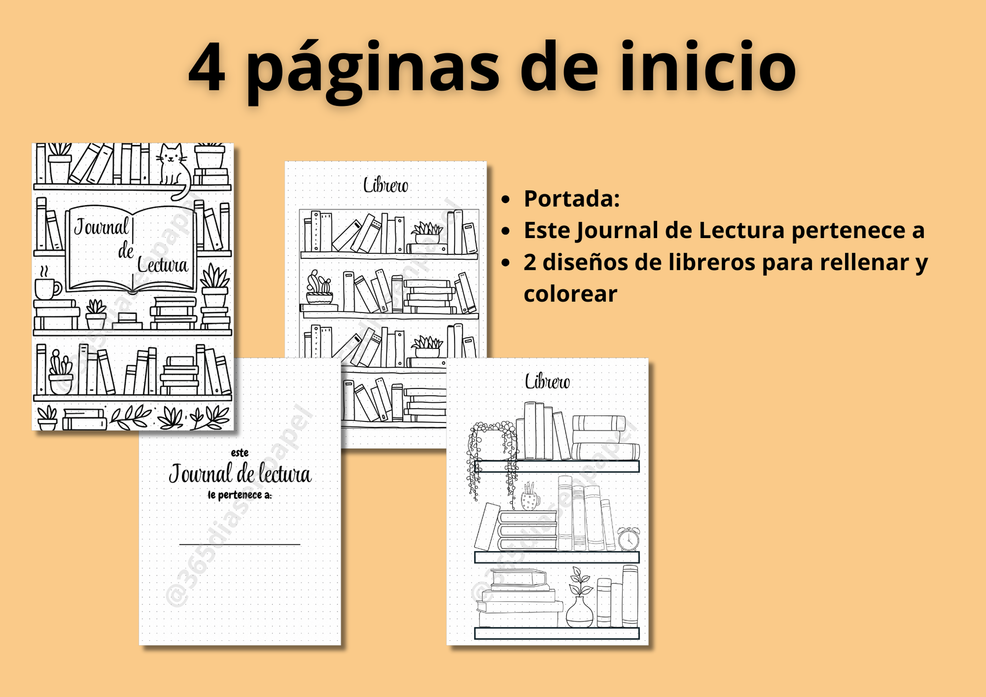 - Páginas de Inicio y Personalización: Comienza tu viaje con una portada dedicada y dos diseños de libreros creativos listos para rellenar y colorear conforme avanzas en tus lecturas.